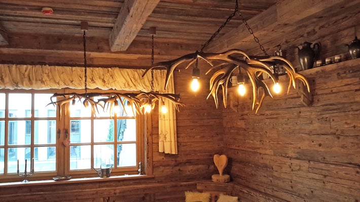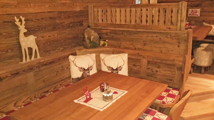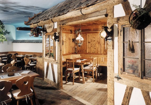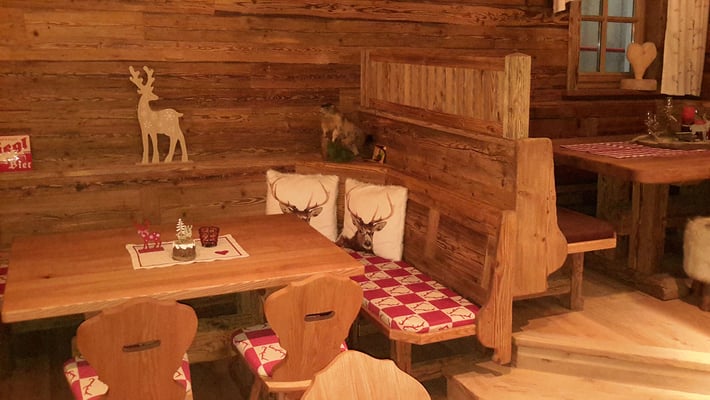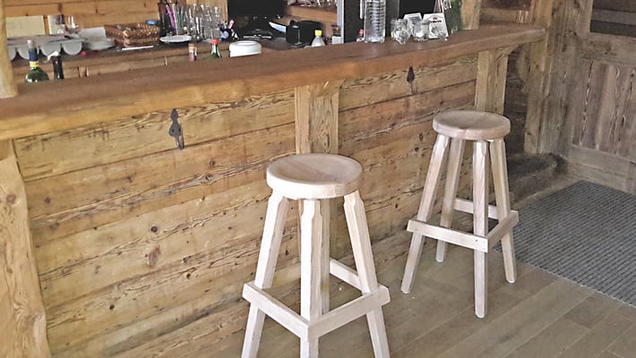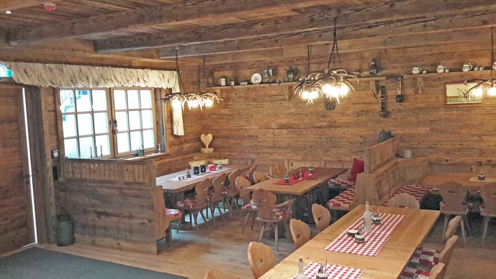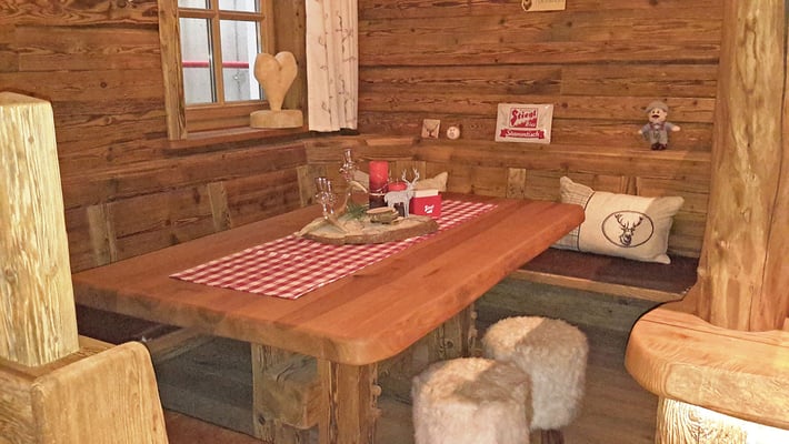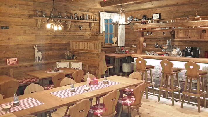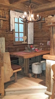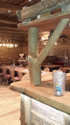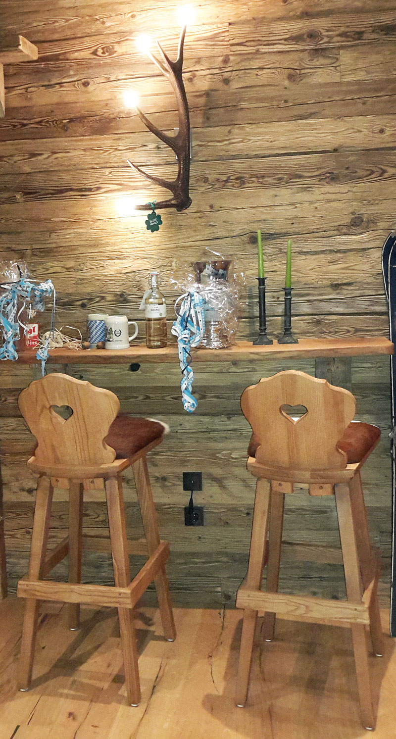 Neue Fotos von der Stube in Isny - jetzt sieht man die Tische gut und die Barhocker wurden mit Fell überzogen:
