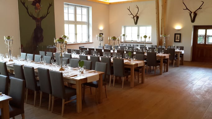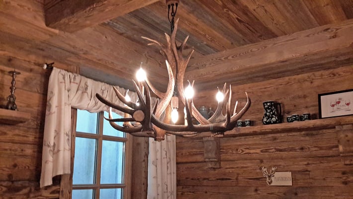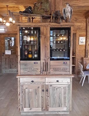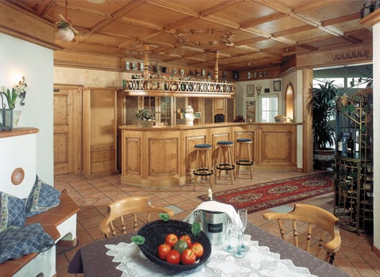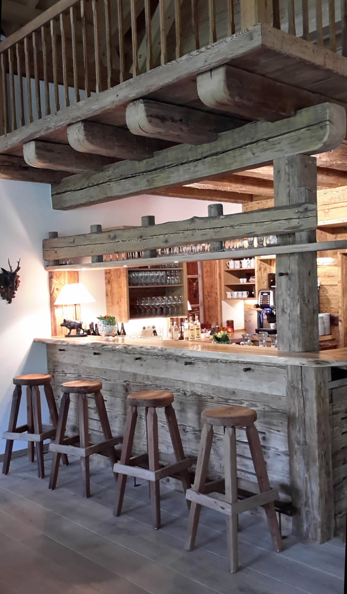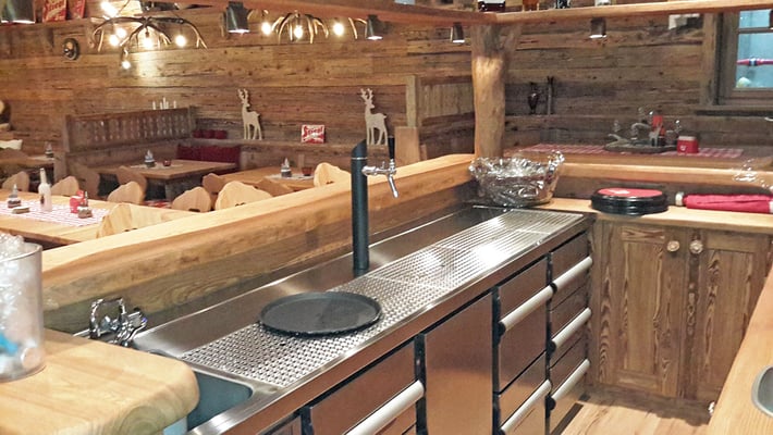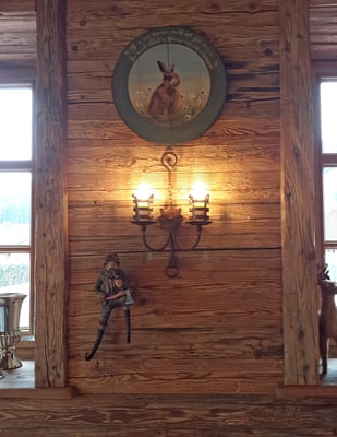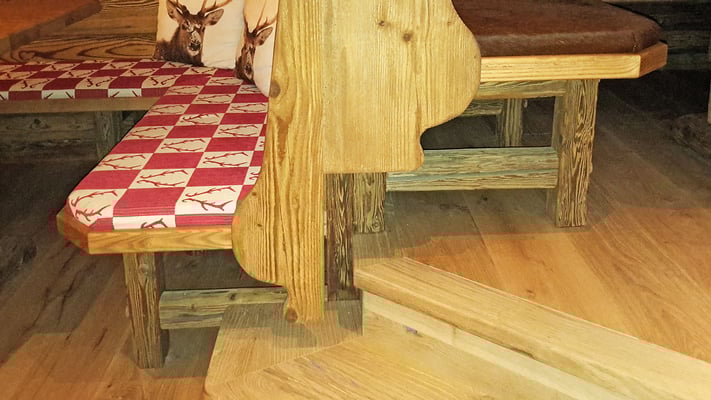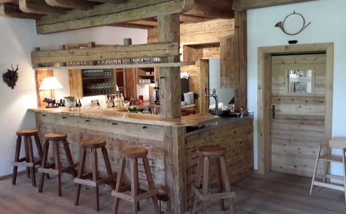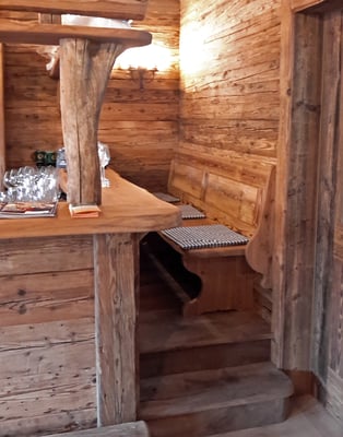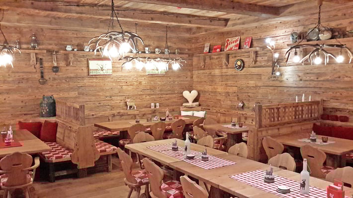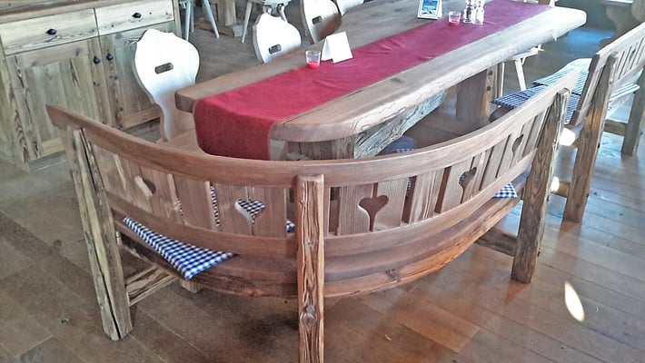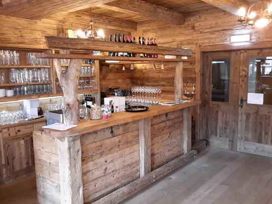 Neue Fotos von der Stube in Isny - jetzt sieht man die Tische gut und die Barhocker wurden mit Fell überzogen: