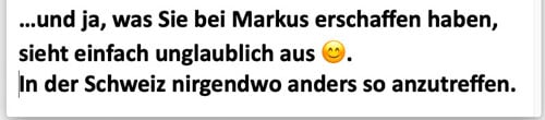 Es ist uns ein Herzensbedürfnis Ihnen auf diesem Wege für Ihre hervorragende Arbeit zu danken, und empfehlen Sie wärmstens weiter.