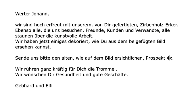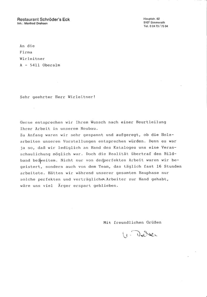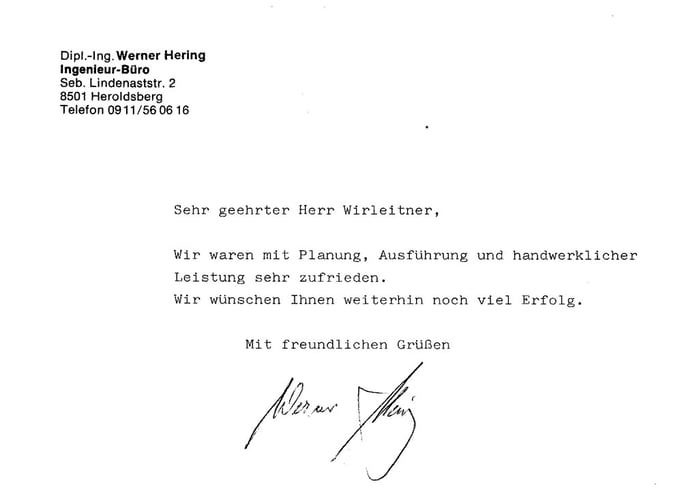 Zu Beginn das kürzlich eingetroffene Referenzschreiben: