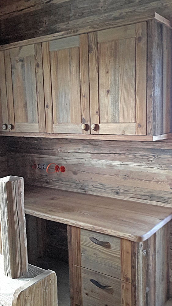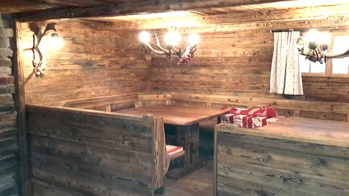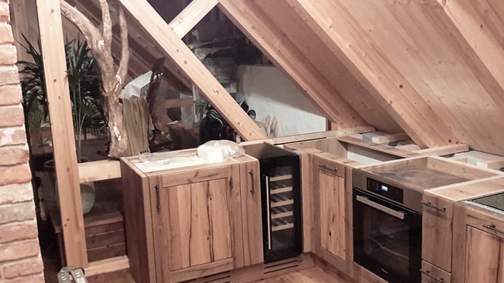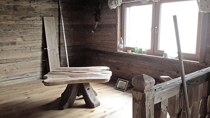 Wand- und Deckenverkleidungen stellen wir aus alter, verwitterter Zirbe und Fichte her.