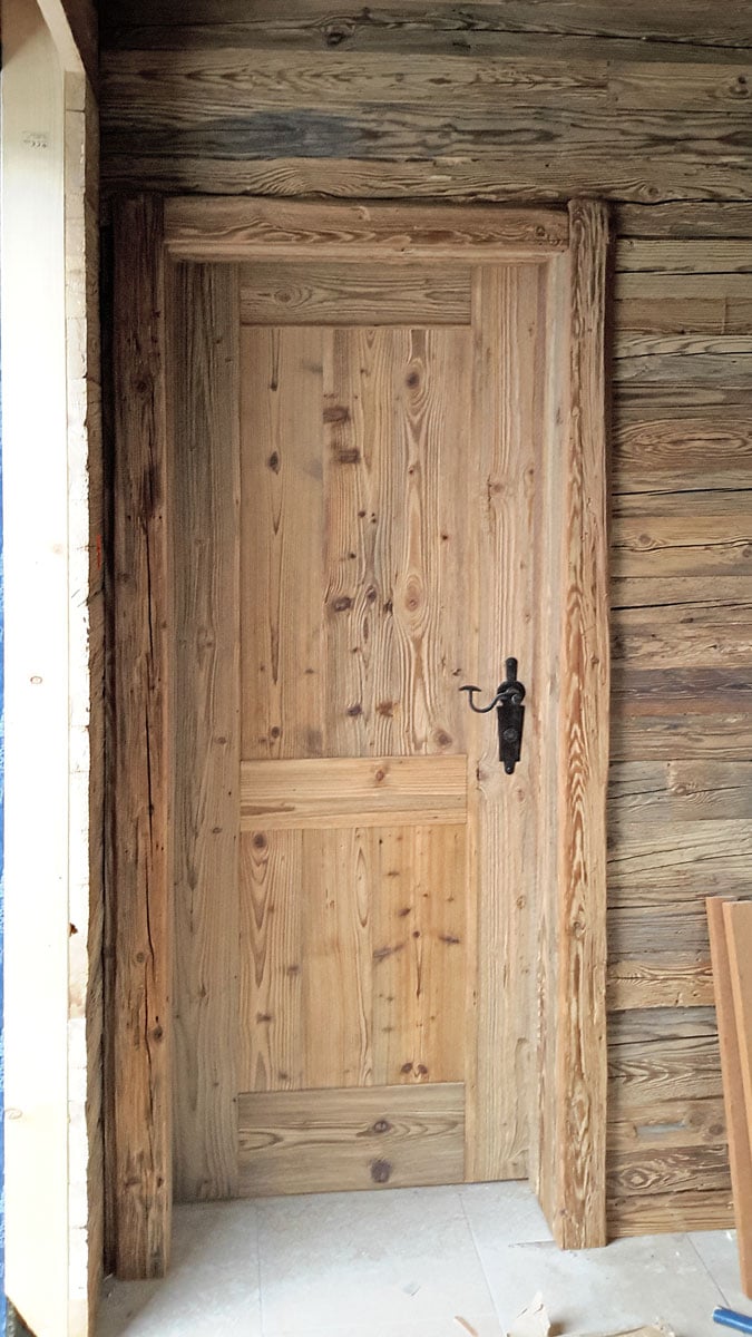 Fassade aus unserem echten Altholz mit Lärchenholz-Fenstern und -Eingangstüren.
