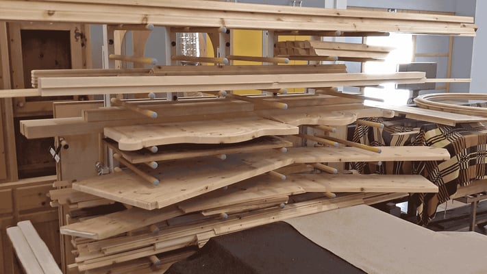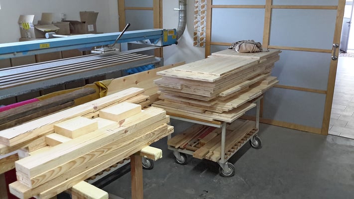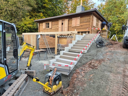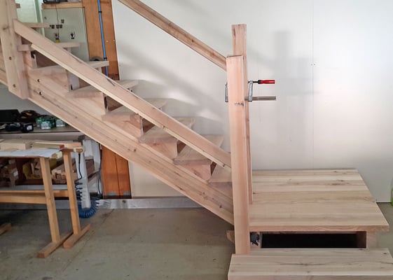 Hier entsteht eine Treppe mit Podest aus unserem dafür bestens geeignetem Eschenholz.