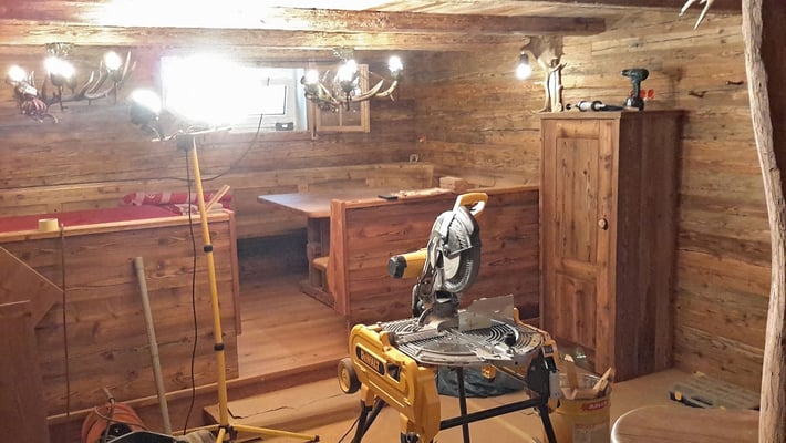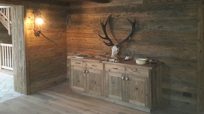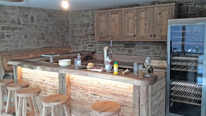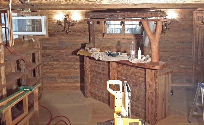 Eine Jagdstube und eine Thekenstube mit unserem herrlichen, von Hand sortieren Althölzern, zur vollsten Zufriedenheit des Auftraggebers.