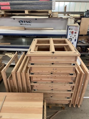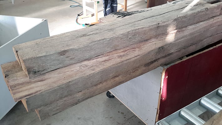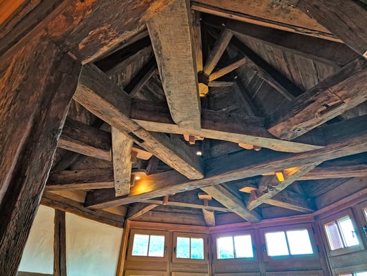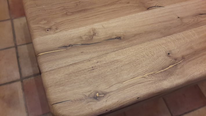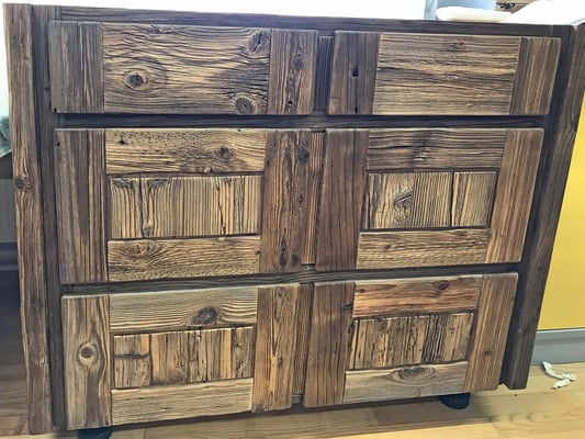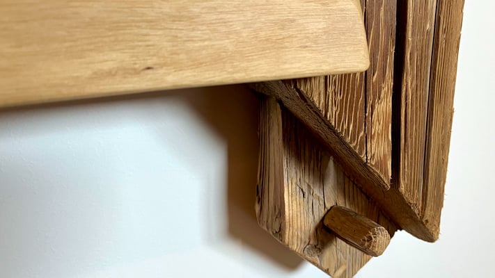 Das gesamte Eichen-Altholz stammt von Balken von abgetragen großen Häusern und Hallen aus dem Großraum Würzburg. Von uns transportiert, zurechtgeschnitten, getrocknet und verarbeitet.