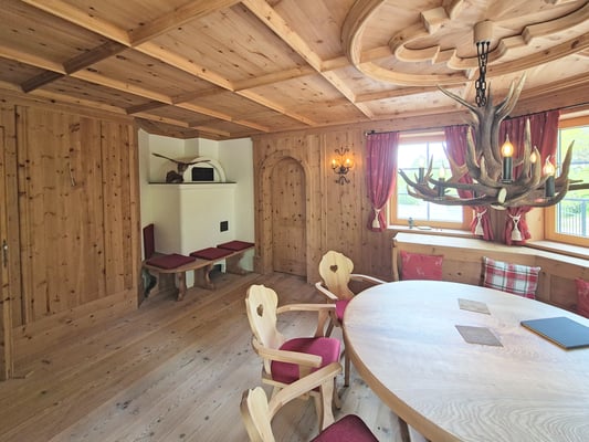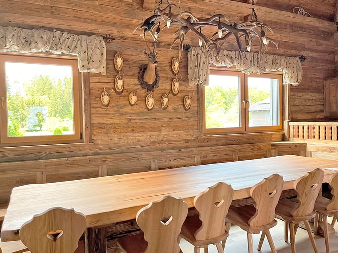 Die Jagdfamilie kann dann in dieser Stube mit bis zu 20 Personen im gemütlichen, jagdlichen Rahmen feiern.