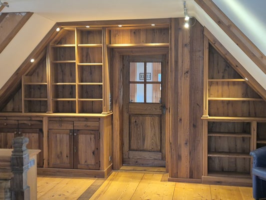 Wir haben einen begehbaren Waffentresor aus alter Eiche gemessen, geplant, gefertigt und montiert.