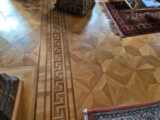 Der Boden wurde aus altem Tafelparket auch aus Eiche gefertigt.