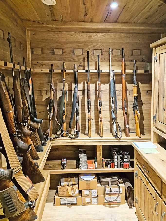 Heute geht es mit dem Aufzug direkt in die Jagdstube im ersten Stock, eine ganz besondere Attraktion.