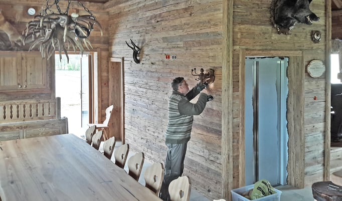 Einige aktive Jäger hatten mich da besucht und der spätere Bauherr meinte, "So eine tolle Jagdstube baue ich mir auch".